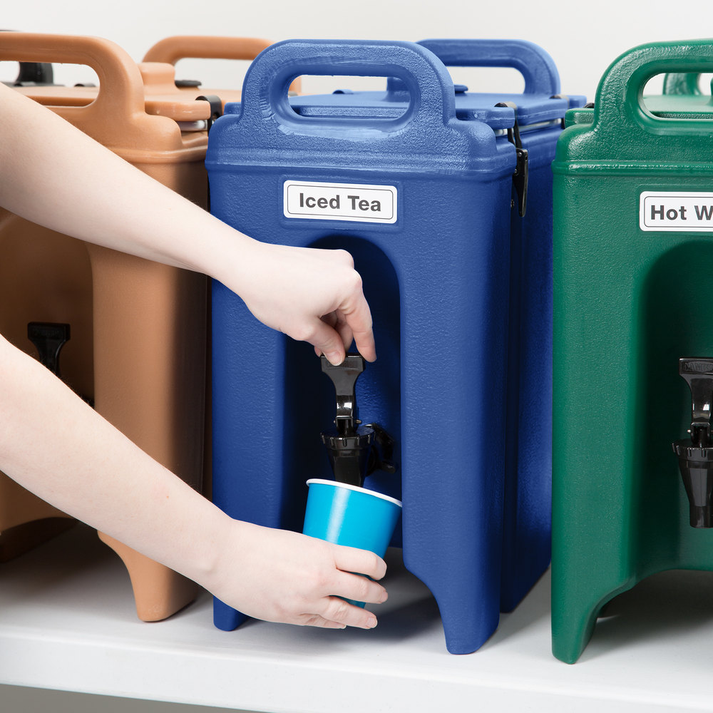 01-100LCDBeverage Dispenser 5.7ltr Blue Cambro$0.00 NZD Excl GST$0.00 NZD Incl GSTCamtainers are a staple for many caterers to hold, transport and serve hot or cold beverages. Sturdy latches secure lids tightly and will not rust.