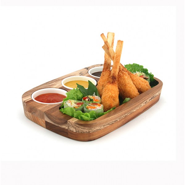 791-74822Athena Dipping Board 20cm x 30cm$68.00 NZD Excl GST$78.20 NZD Incl GSTAthena dip plate set made from natural acacia wood with porcelain sauce bowls. Hand wash and dry acacia wooden plate, porcelain sauce bowls are dishwasher, microwave safe.