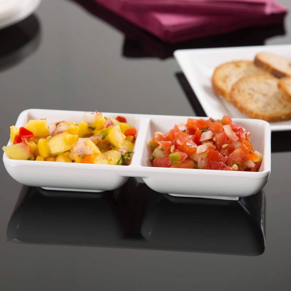 391-91404-wMelamine Divided Sauce Dish 100mm x 75mm$2.80 NZD Excl GST$3.22 NZD Incl GSTRyner Melamine is designed for hospitality use, ideal for displays, is food safety approved and dishwasher safe.