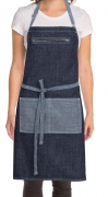 The Manhattan Bib Apron features a zippered chest pocket, an adjustable neck buckle and reverse ties. The reverse double front pockets supported by stylish riveted pocket ends made for an apron that will last. Available in black and indigo blue.