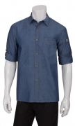 The Detroit Long-Sleeve Denim Shirt features roll-up long-sleeve with 1 button tab to create a hybrid shirt, also a left chest pocket and left sleeve thermometer pocket finish. Available in black and indigo blue.