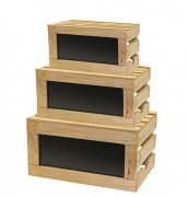 713-RCBCRATE1Rustic Risers Wood Crate Set w/Chalkboard Set of 3$148.60 NZD Excl GST$170.89 NZD Incl GSTTableCraft's rustic risers add height to your setting or use as an attractive storage option. Crate sets nest together for space saving. Natural wood, lightly clean with a damp cloth and dry immediately Small: 38cmL x 25.5cmH x 18.5cmD Medium: 42cmL x 30cmH x 23.5cmD Large: 49cmL x 34cmH x 26.5cmD